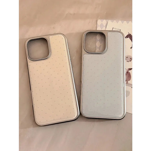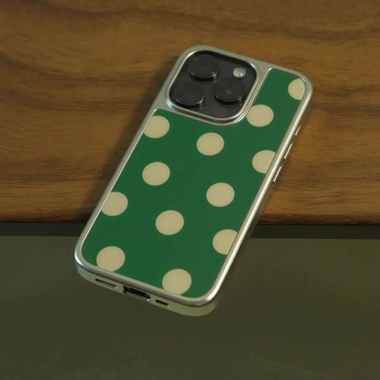 Retro Polka Dot iPhone Case with Silver Edge – Shockproof TPU (iPhone XR–17 Pro Max)