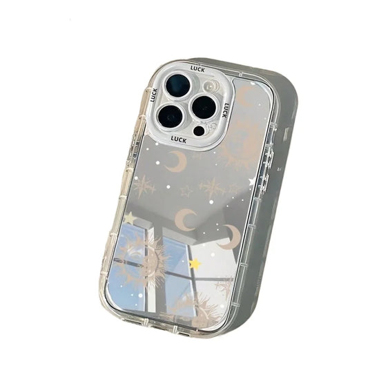 Stars & Moon Luxury Mirror iPhone Case – Makeup Mirror Design (iPhone 11–17 Pro Max)
